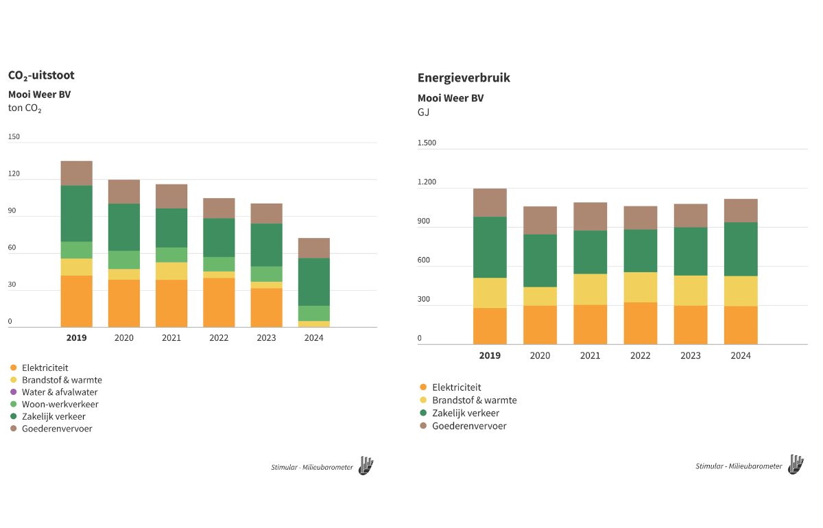 De Milieubarometer toont ook het energieverbruik van je organisatie, inclusief brandstof voor bedrijfsvoertuigen. De nieuwe grafiek sluit aan bij scope 1 en 2 van de CO₂‑footprint en de CSRD-tabel. Zo zie je of je CO₂‑reductie komt door energiebesparing of door verduurzaming van energiebronnen. Dat helpt je sturen volgens de Trias Energetica: eerst besparen, dan verduurzamen.